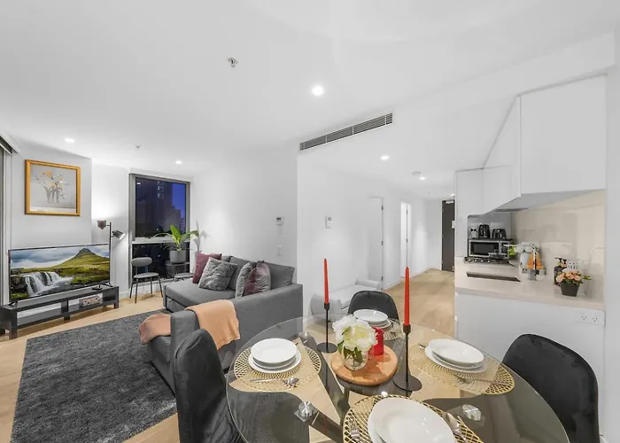 Gasten kunnen verblijven in City Views Crown Pool Gym Cbd Theatre 17Th Floor Melbourne appartementen van 50 m², gelegen in het centrum van Melbourne en op 19-minuten wandelafstand van het Australian Centre for the Moving Image. Er is ook een privézwembad voor een nog aangenamer verblijf.